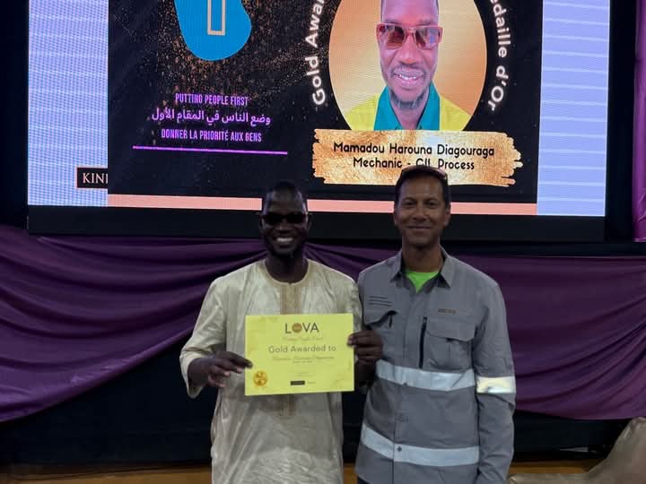 Kinross a annoncé les lauréats 2025 des prix « Living Our Values Awards » (LOVA), et nous félicitons Mamadou Diagouraga, mécanicien à l’usine CIL de Tasiast, qui a été reconnu en tant que lauréat Or dans la catégorie « Donner la priorité aux personnes ».