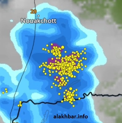 ويتوقع تكون سحب جديدة على الحوض الغربي خلال الساعتين القادمتين، وأخرى على جنوب غرب البلاد، جنوب غرب ولاية الترارزة، ستتحرك باتجاه الشمال، نحو وسط وشمال الولاية.