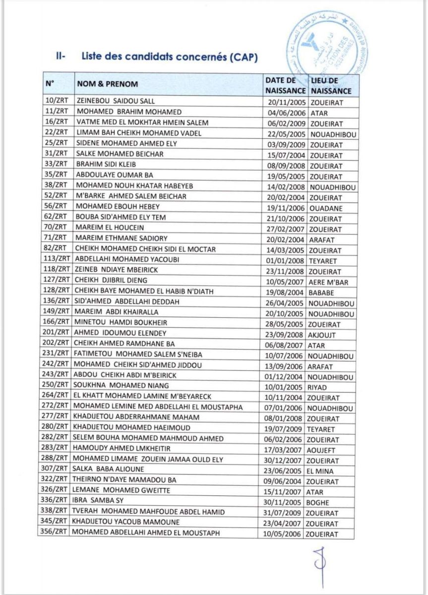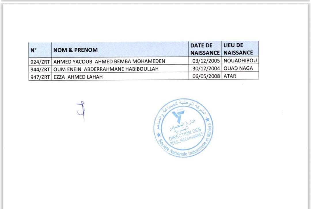 أصدرت إدارة المصادر البشرية بالشركة الوطنية للصناعة والمناجم (سنيم)، مساء اليوم الثلثاء، لائحة بأسماء المقبولين للتكوين في شهادة الكفاءة المهنية (Cap) و فني عالٍ (BTS) بمعهد التكوين التقني بازويرات