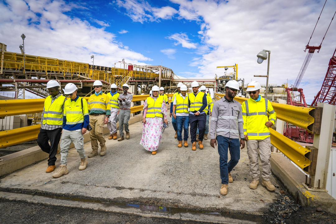 وقد استُهلّت الزيارة بإحاطة شاملة حول معايير السلامة قدمها نائب الرئيس والمدير العام المساعد للشركة، جايليم مانهاس، قبل التوجه إلى منصة مراقبة المنجم المفتوح رفقة الفريق التقني وفريق التعدين.