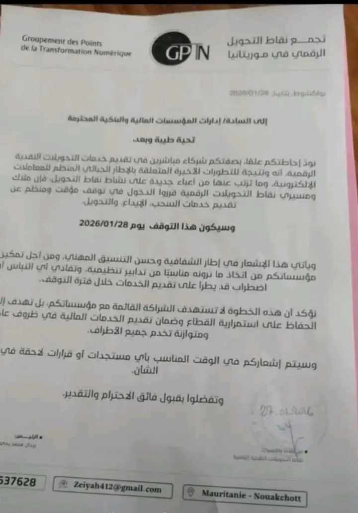 بنشاب : قرر تجمع وكلاء التحويل الرقمي إغلاق جميع الوكالات التابعة لهم، اعتراضا على ضريبة 10% على الوكلاء و0.1% على التحويلات عبر التطبيقات الرقمية، وذلك ابتداء من يوم غد 28 يناير الحاري.