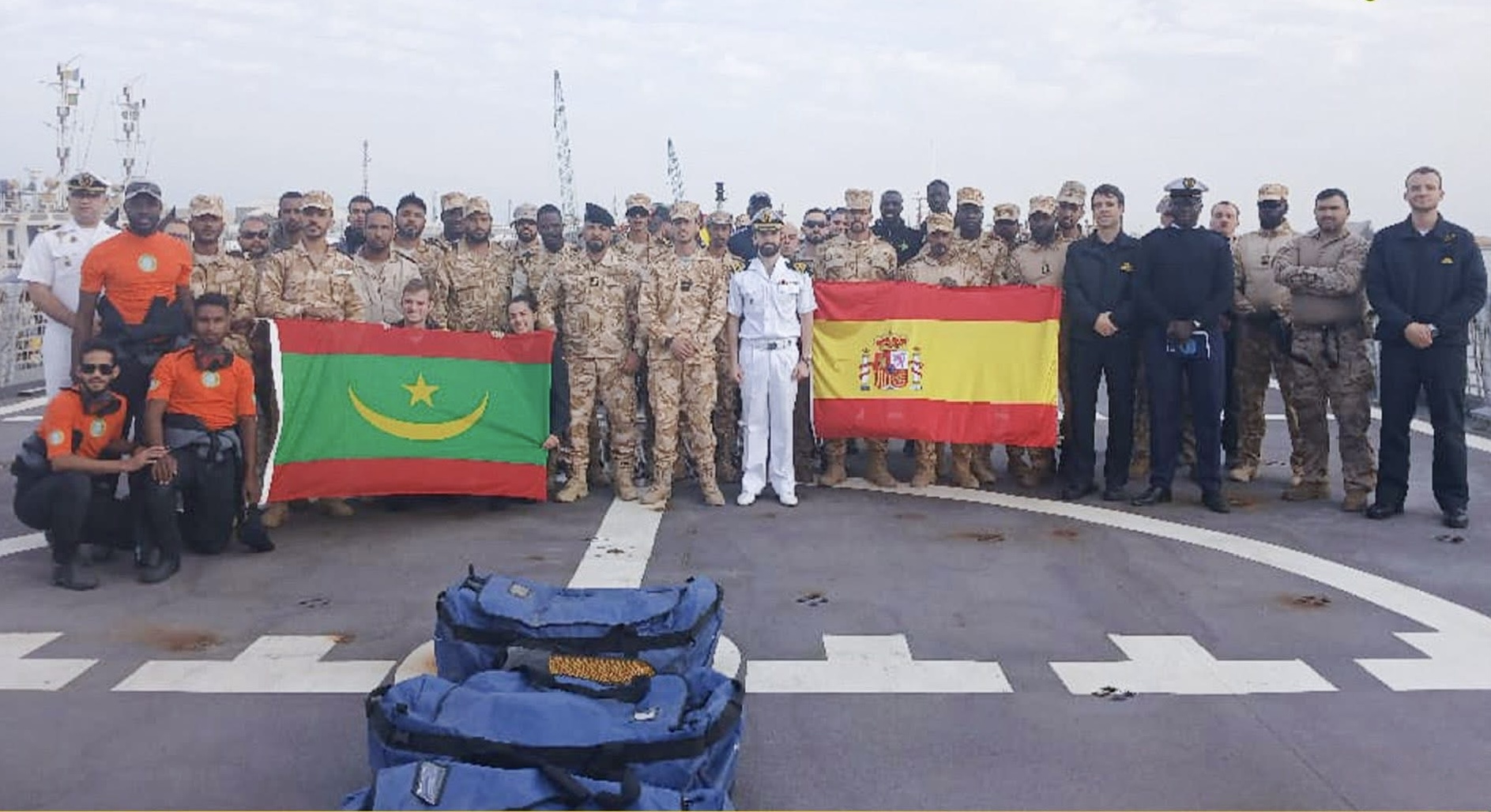 بنشاب : نظمت البحريتان الموريتانية والإسبانية، الخميس، تمارين بحرية مشتركة بمدينة نواذيبو، وذلك في إطار التعاون العسكري الثنائي بين موريتانيا ومملكة إسبانيا، عقب رسو سفينة أعالي البحار الإسبانية "فيرور" بميناء نواذيبو.