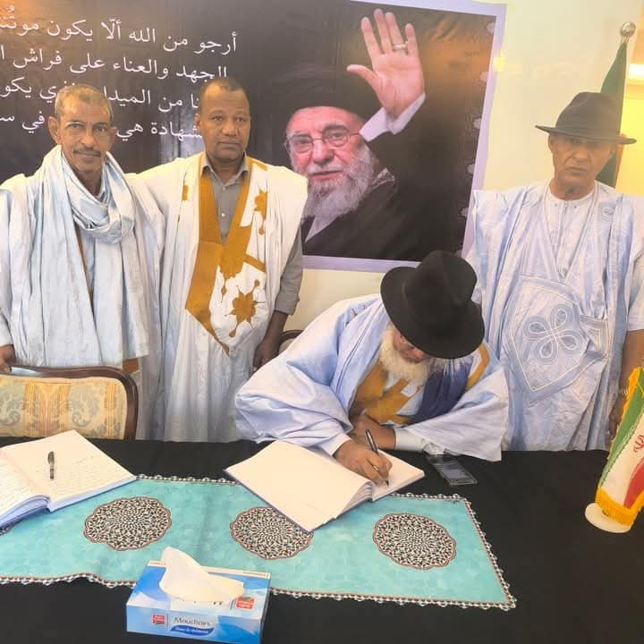 أتقدم باسمي ونيابة عن الرئيس الموريتاني السابق السيد محمد ولد عبد الغزيز وجميع قادة ومنتسبي الحزب بخالص العزاء وصادق المواساة إلى قيادة الجمهورية الإسلامية الإيرانية و إلى شعبها العظيم، في فاجعة استشهاد قائد الثورة الاسلامية الإيرانية سماحة آية الله السيد علي خامنئي و كل من إستشهد معه من الإيرانيين إثر العدوان الذي شنته امريكا و الكيان الصهيونى على الجمهورية الإسلامية الإيرانية في الايام الأخيرة، راجين من العلي القدير أن يتغمدهم بواسع رحمته و يلهم الشعب الإيراني الصبر و الثبات و أن يحفظ الأمة الإسلامية من الفتن و الاعتداءات.