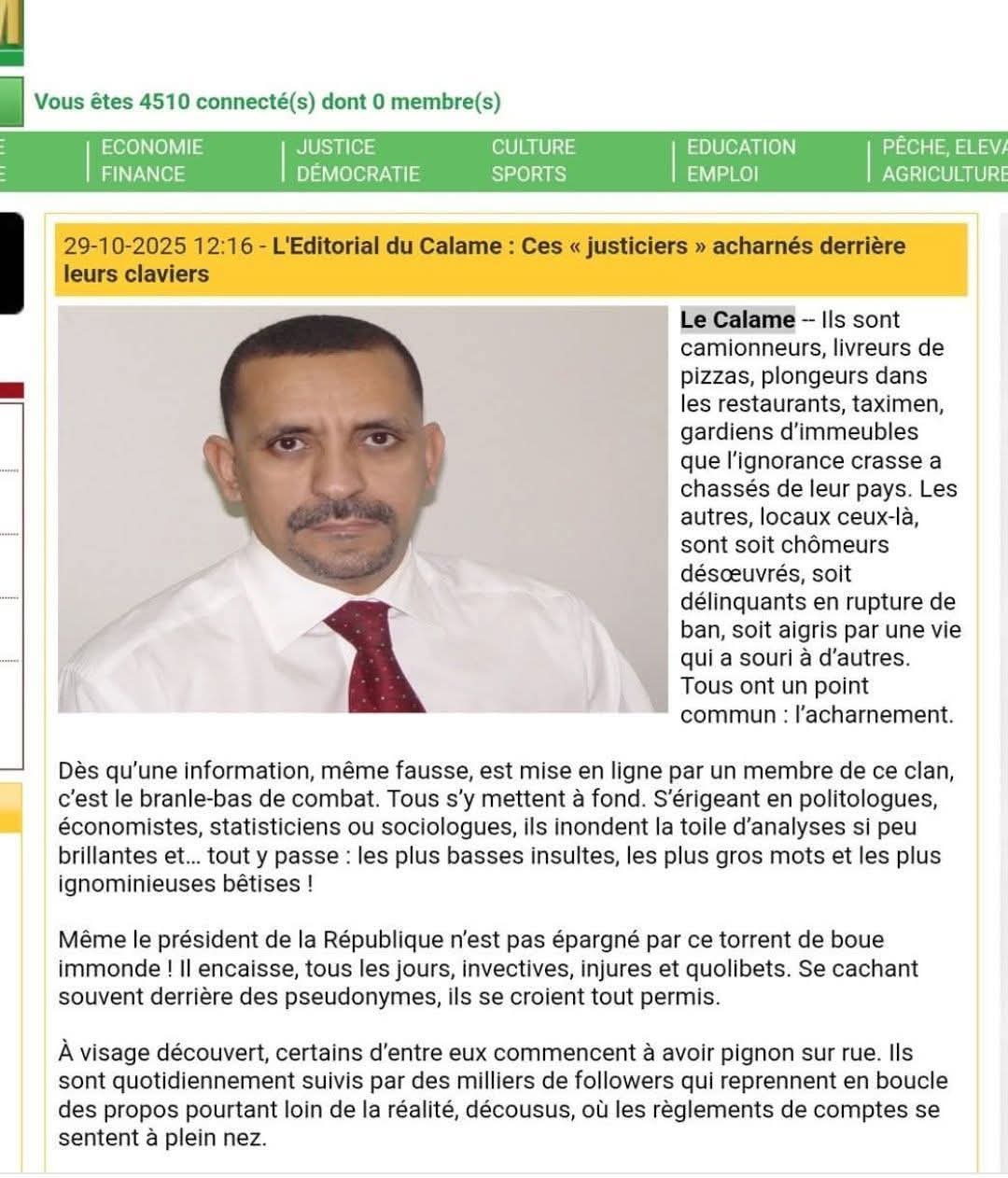 بنشاب : مقال أحمد ولد الشيخ ليس رأيا صحفيا.. بل بلاغ خوف.. بدل مواجهة الحقائق، اختار شتم الذين يكتبون ويعبرون عن آرائهم وتلميع صورة السلطة ..وكأن الرئيس معصوم والبلد بحاجة لحراس هيبة لا حراس عدالة. المشكلة ليست في العدميين - كما يقول - بل في نخبة أفلست سياسيا وأخلاقيا وعجزت عن الإجابة عن أسئلة بسيطة: أين التنمية؟ أين محاربة الفساد؟