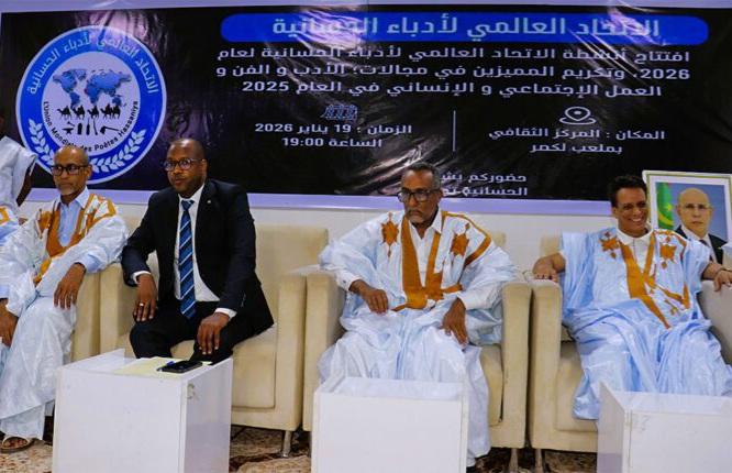 بنشاب : افتتح الاتحاد العالمي لأدباء الحسانية مساء الاثنين أنشطته للعام 2026 وتكريم عدد من المتميزين في مجالات الأدب والفن والعمل الاجتماعي والإنساني خلال العام 2025.