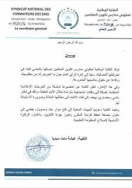 بنشاب : تؤكد النقابة الوطنية لمكوني مدارس تكوين المعلمين تمسكها بالمضي قدمًا في تحركاتها النضالية، سعيًا إلى إنارة الرأي العام حول ما تتعرض له من مظلومية، ودفاعا عن حقوق منتسبيها المشروعة.
