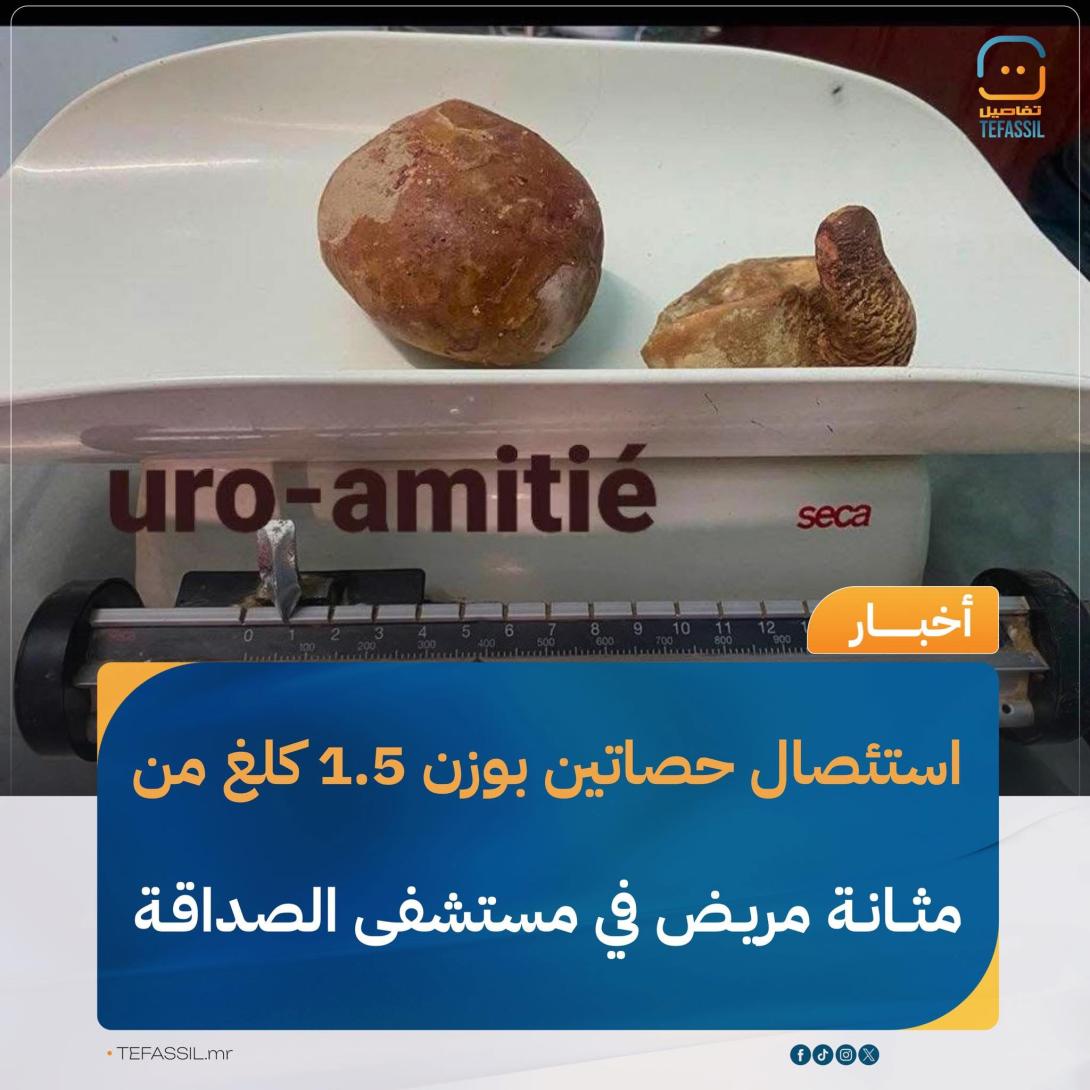بنشاب : أجرى فريق من قسم المسالك البولية بمستشفى الصداقة في نواكشوط، عملية جراحية ناجحة لمريض قادم من الداخل، تم خلالها استئصال حصاتين من المثانة بلغ وزنهما الإجمالي أكثر من 1.5 كيلوغرام.