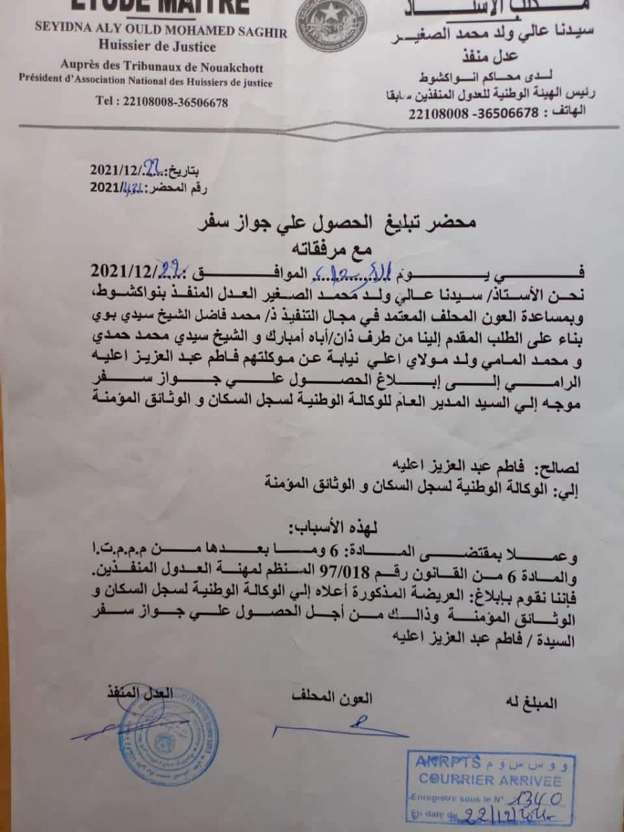 طالعتنا ظهر هذا اليوم الخميس الموافق 26/05/2022 بعض صفحات وسائل التواصل الاجتماعي بأمور من بينها أن الوكالة الوطنية لسجل السكان والوثائق المؤمنة تمنع حرم الرئيس السابق محمد ولد عبد العزيز من الحصول على عقد زواج يخصها، كما أن أحد أبنائها –بحسب هذه الصفحات دائما- ممنوع هو الآخر من الحصول على بطاقة تعريفه.