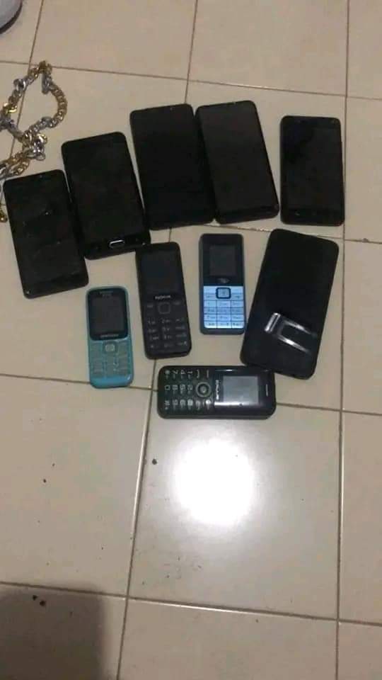 وضبطت الشرطة عشرة هواتف من بينها ستة ذكية، وتلفزيون بلازما إصافة إلى بعض الأثاث و الأغراض المنزلية.