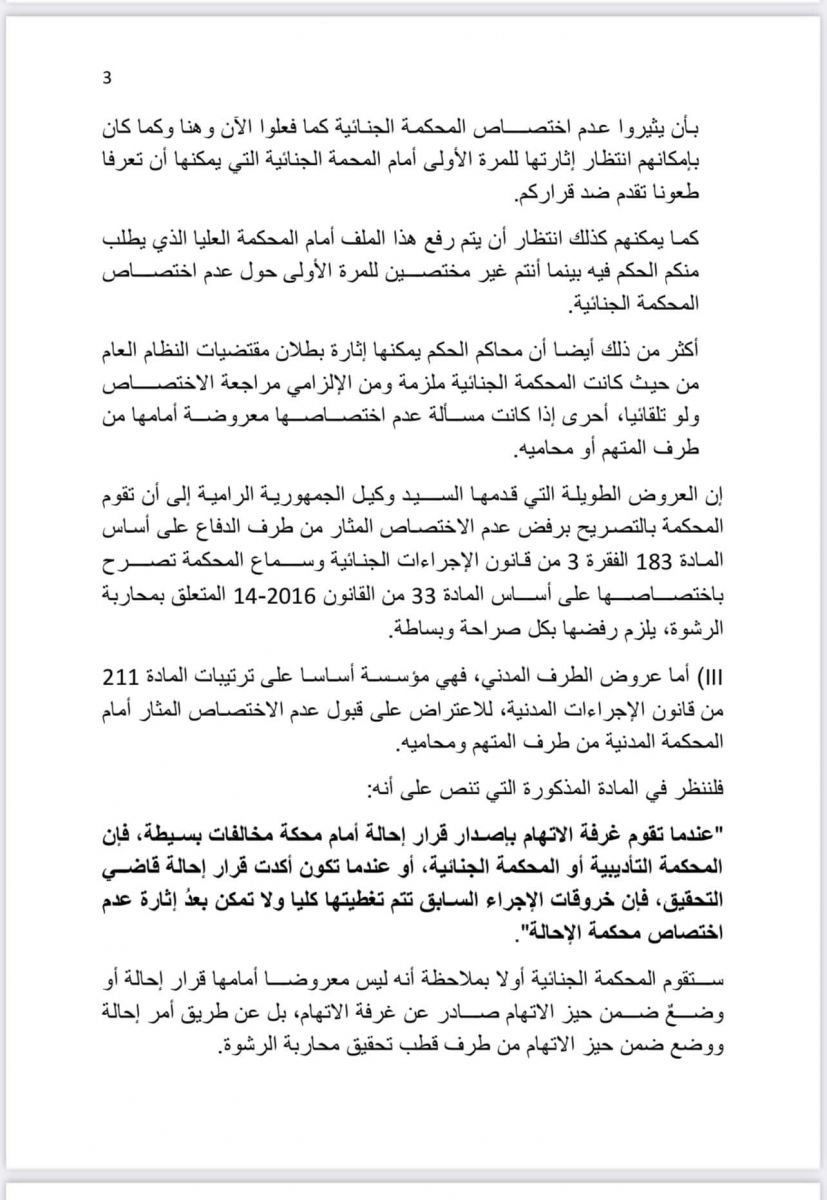 ترجمة حرفية لمداخلة المحامي *سيري كليدور لي*عضو دفاع الرئيس السابق...وثائق