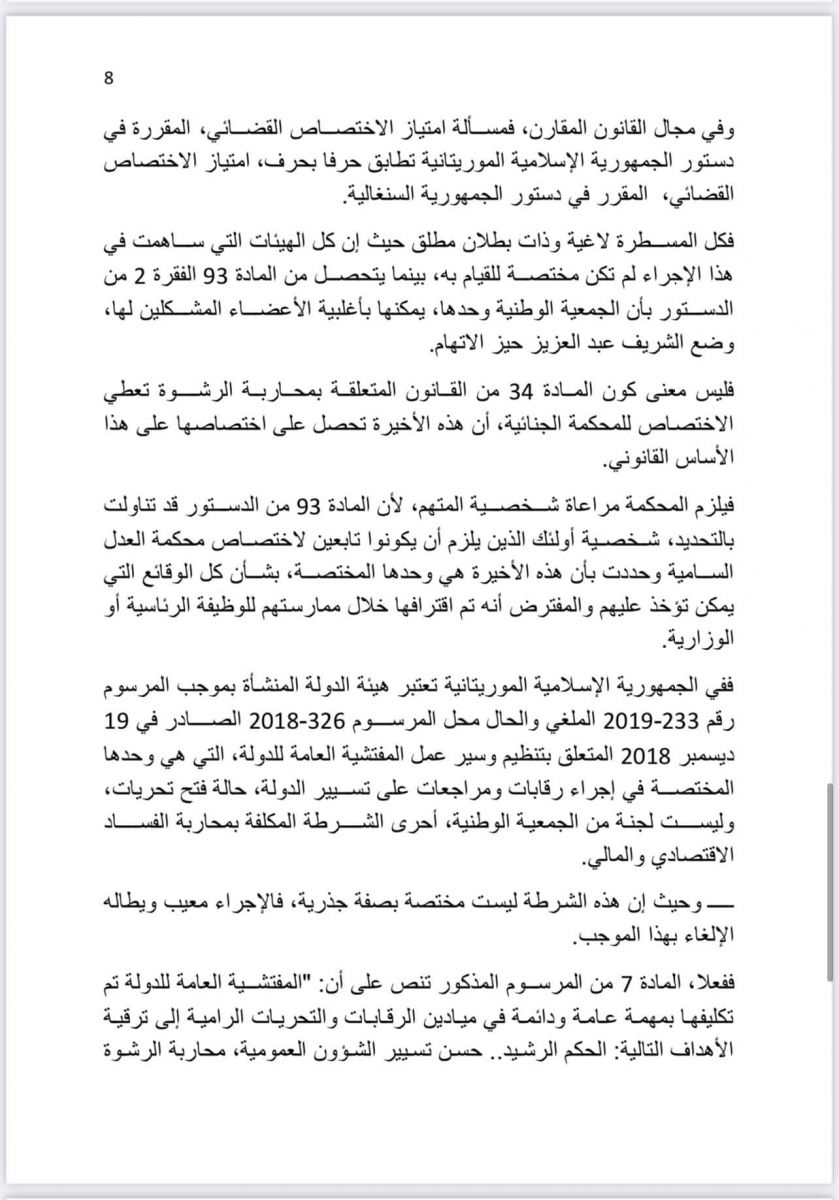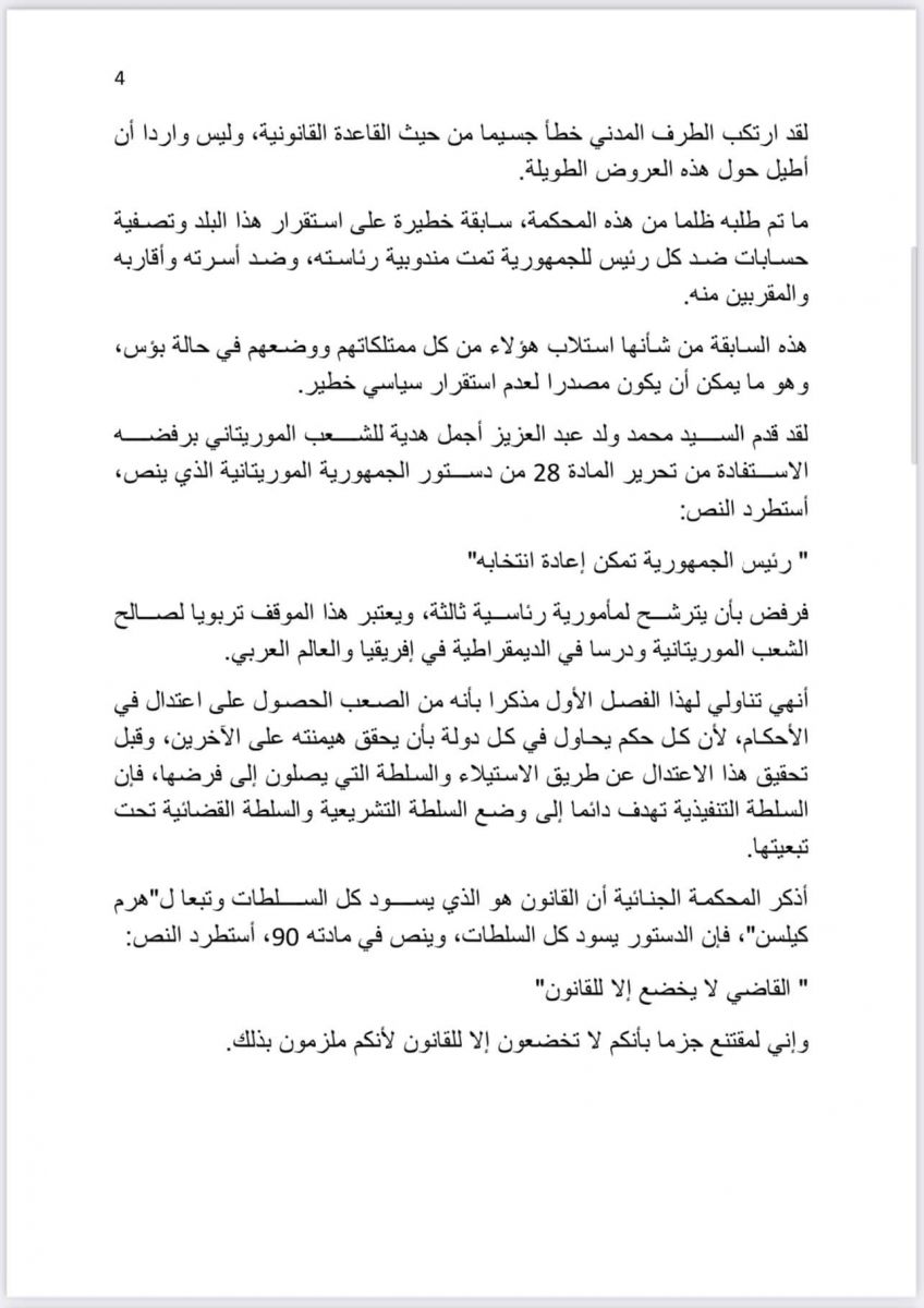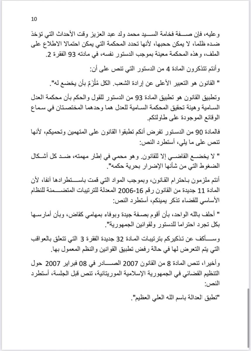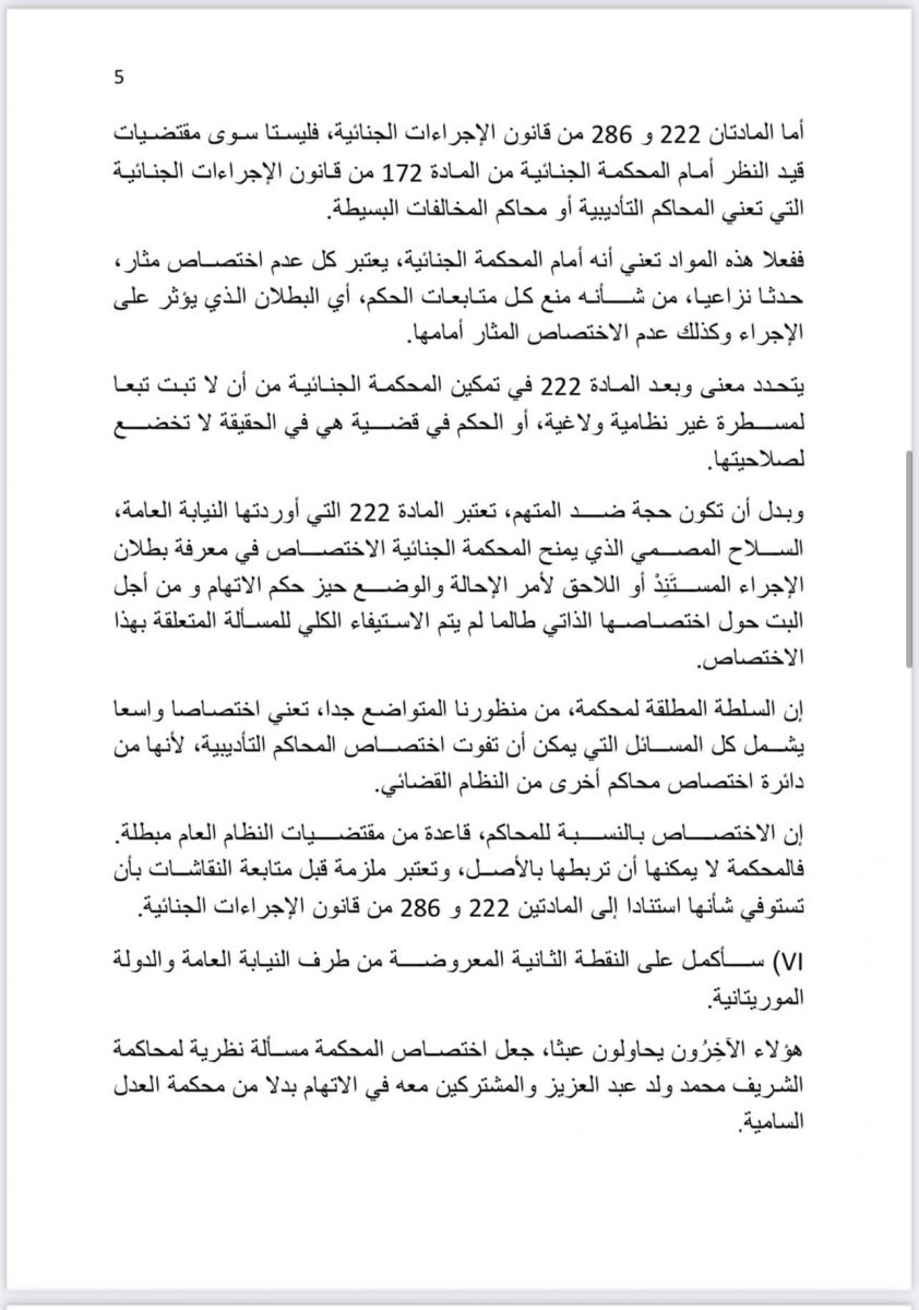 بنشاب : ترجمة نص مرافعة عضو هيئة الدفاع عن فخامة الرئيس السابق محمد ولد عبد العزيز المحامي السنغالي الدولي الأستاذ سيرى كليدور لي الأربعاء الماضي أمام المحكمة.