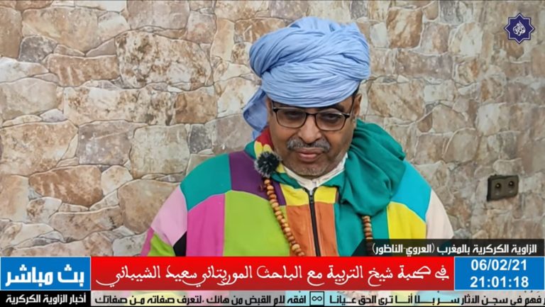 سعيد الشيباني ممثل الطريقة في موريتانيا مرتديا زي الطريقة (قناة الطريقة بيوتيوب)
