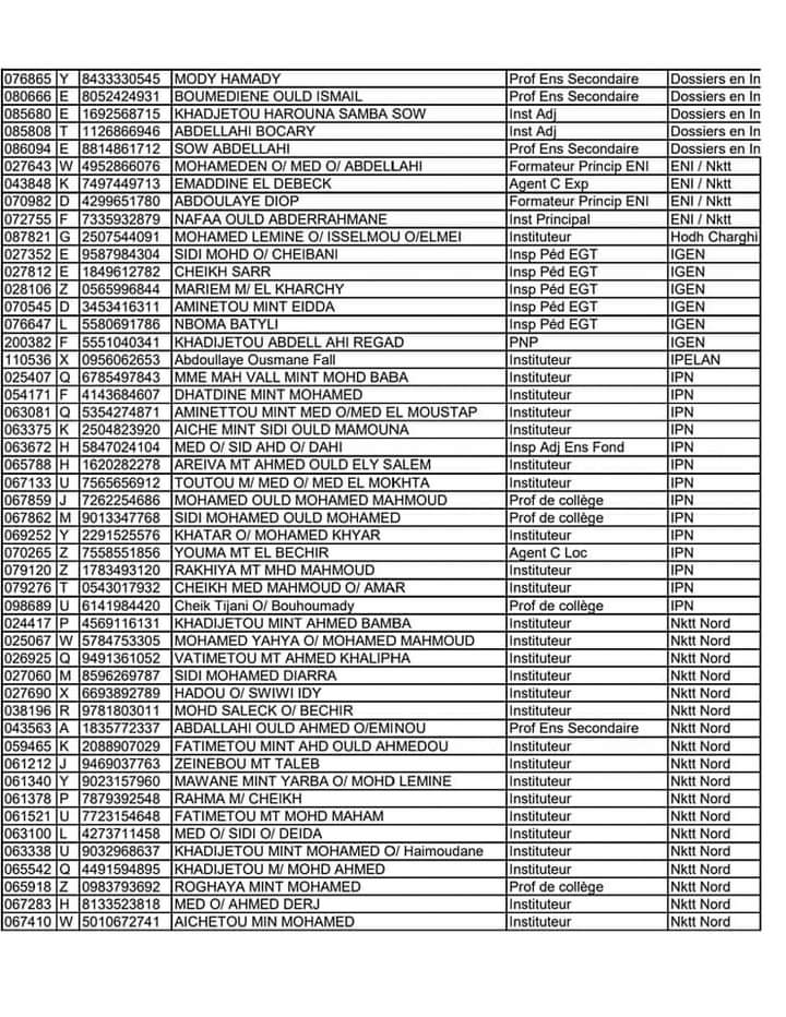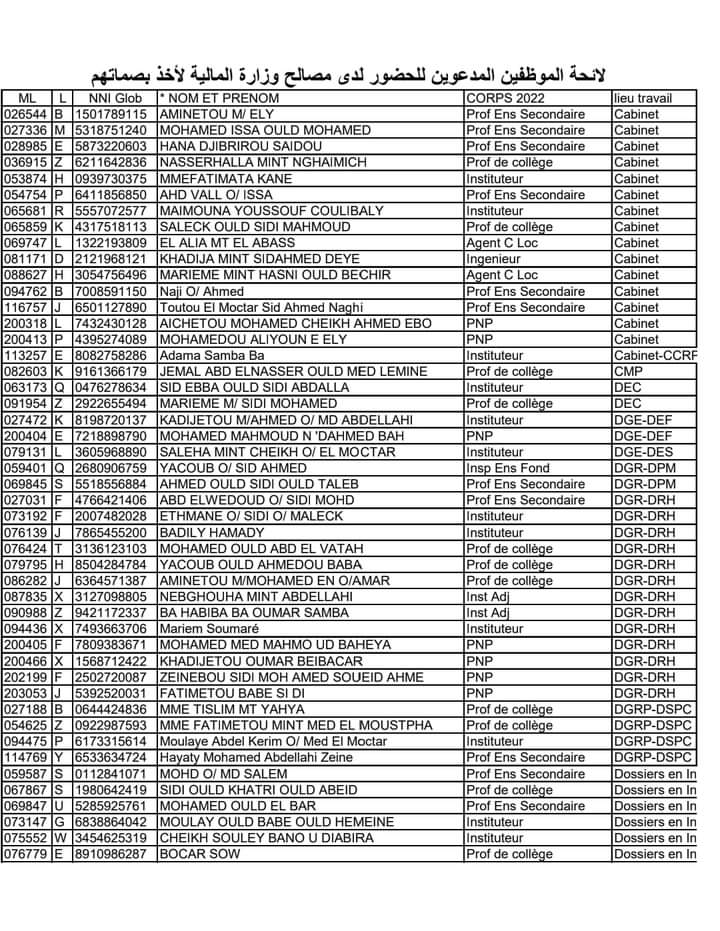 بنشاب: طالبت وزارة التهذيب الوطني وإصلاح النظام التعليمي نحو ثلاثمائة من المدرسين العاملين بالمديريات الجهوية بولايات نواكشوط، والإدارات المركزية الاتصال بالمديرية العامة للميزانية لإكمال إجراءات أخذ بصماتهم لدى المصالح المكلفة بالرواتب بالرواتب، وذلك يوم الاثنين الموافق 2024/02/05 ، (من الساعة 14H30-18H30)-كآخر أجل-