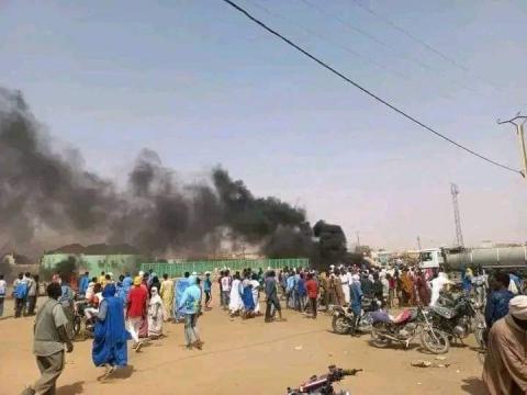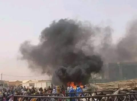 و حسب المصدر فقد أحرق المحتجون بعض الأعرشة التي تعيش فيها أسر من اللاجئين الماليين في المدينة الذين يتهمون بقتل المواطن.