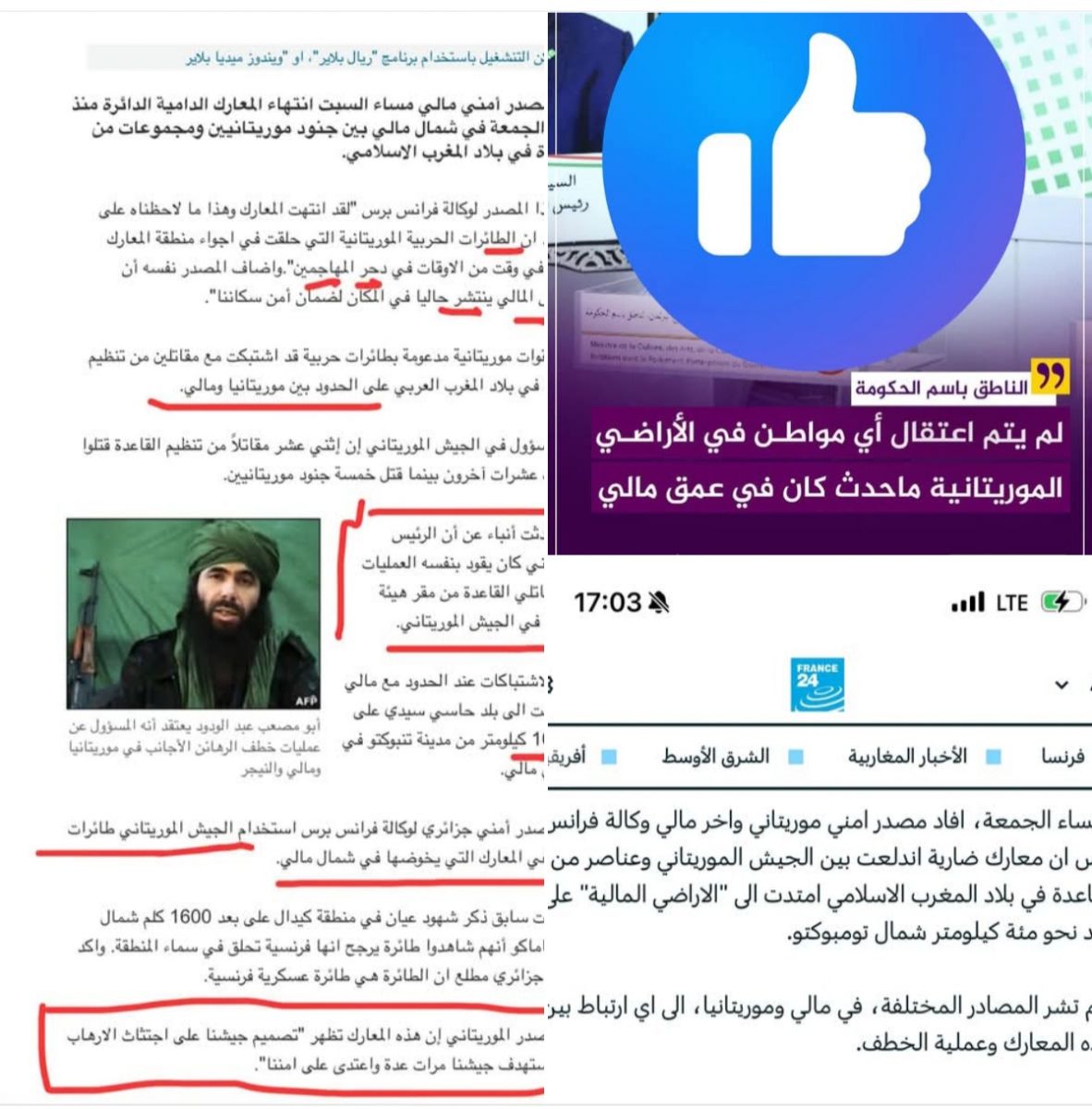 أيتها "الحلة" العاجزة عن تحقيق عشر إنجازات القائد محمد ولد عبد العزيز، وفي ظل تبريرك الخجول بأن العمليات التي استهدفت المواطنين الموريتانيين الأيام الماضية كانت على الأراضي المالية، نذكرك بلقطات مشرقة من تاريخ الحدود الموريتانية في فترة حكمه، حين كان يشرف بنفسه على تنفيذ الخطط و إدارة المعارك القتالية في المناطق الحمراء وبؤر النار على الحدود وخلفها و على امتداد مئات الكيلومترات في الأراضي المالية..