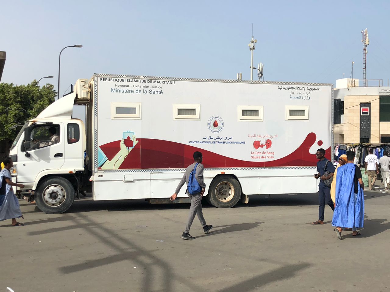وينتهز التجار المتنقلون الفرصة من أجل عرض بضائعهم على أرصفة الشارع الخالي من السيارات بإستثناء سيارة المركز الوطني لنقل الدم التى كانت حاضرة داخل المنطقة المحظورة من أجل استقبال المتبرعين بالدم