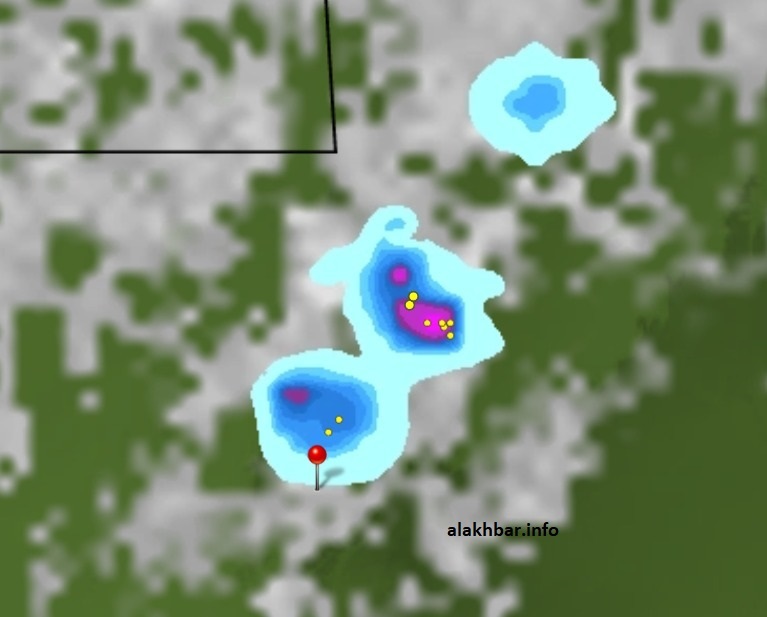 خارطة انتشار السحب الماطرة المتوقعة على ولاية الترارزة ابتداء من مساء اليوم
