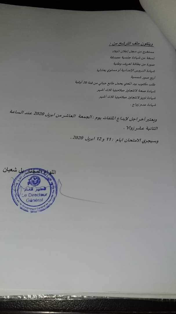 بنشاب : أعلن التجمع العام لأمن الطرق في موريتانيا عن إكتتاب تلاميذ وكلاء وذالك إبتداء من يوم الإثنين الموافق السادس أبريل 2020