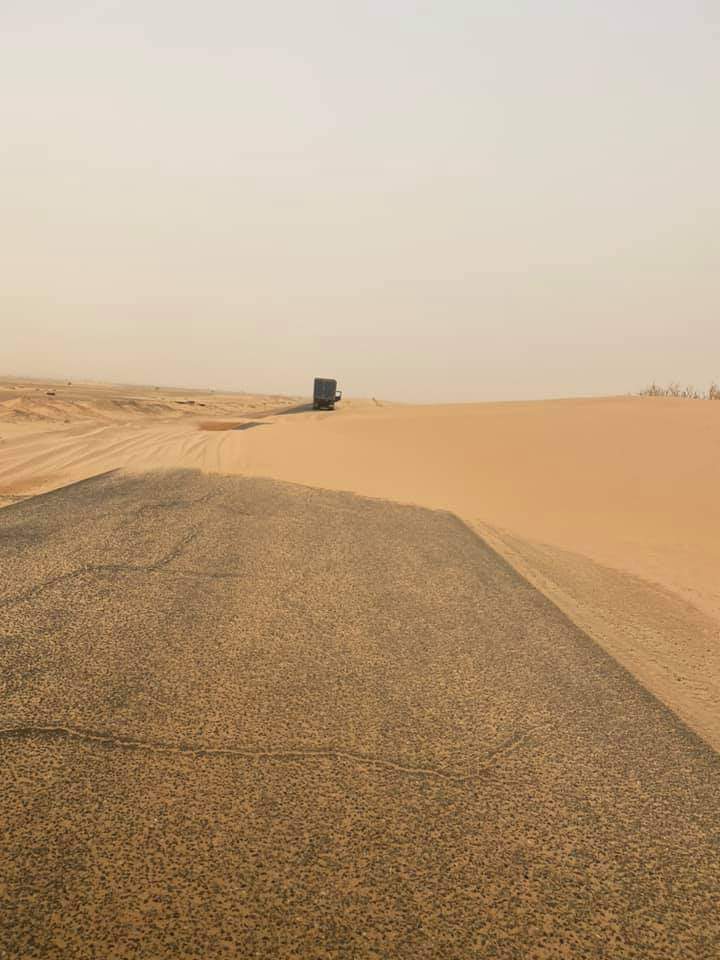 بنشاب : لعدة أسابيع طمرت الرمال طريق نواكوط ـ انواذيبو، ولإزاحتها تحركت جرافة واحدة لأزيد من 400 كلم (سبق وأن كتبنا عنها بالتفصيل من قبل)، ولا يزال تهديدها قائما وسط تجاهل تام من السلطات ممثلة في الوزارة الوصية والمؤسسات ذات الصلة...
