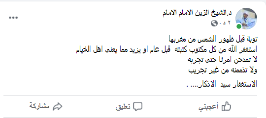 بنشاب : في سابقة ان يعلن احدهم و على مستوى من العلم و الفقه توبته من مناصرة رئيس او سياسي فقد خرج الفقيه و العالم الموريتاني الشيخ ولد الزين بتدوينة يعلن فيها توبته من دعم و مؤازرة الرئيس الحالي ولد الغزواني و تخليه عن دعمه بسبب ما فسر انه تخلى النظام الحالي عن من اوصلوه سدة الحكم في الانتخابات الاخيرة...(أنظر التدوينة اسفله).