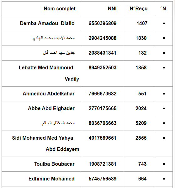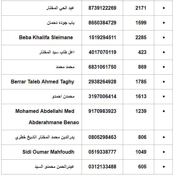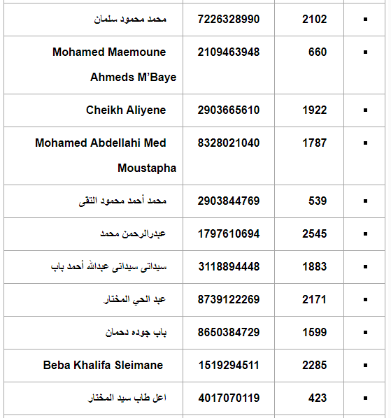 ترفع الأركان العامة للجيوش /المكتب الثالث إلى علم الشباب الموريتانيين، المشاركين في مسابقة الاكتتاب المباشر للطلبة الضباط الطيارين لسنة 2020 أن نتائج المسابقة جاءت على النحو المبين في الجدول أدناه، كما تدعو المشاركين الظاهرة أسماؤهم على اللائحة إلى الالتحاق بأركان الجيش الجوي ابتداء من يوم 03/12/2020 لإجراء فحص محاكي الطيران.