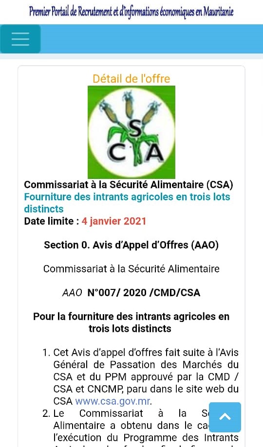 لجنة رقابة الصفقات العمومية في موريتانيا بررت منح الصفقة عبر التراضي للشركة السنغالية بأن الاستمرار في الصفقة عبر العروض المفتوحة "سيؤدي إلى تفويت الحملة الزراعية، مما قد يتسبب في وضعية خطرة".