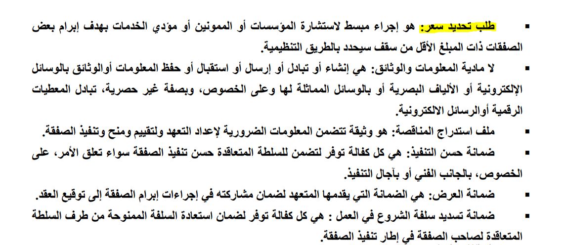 وتحدد مدونة الصفقات الموريتانية، وهي أعلى نص قانوني منظم للصفقات في البلاد "طلب تحديد سعر"، بأنه "إجراء مبسط لاستشارة المؤسسات أو الممونين أو مؤدي الخدمات بهدف إبرام بعض الصفقات ذات المبلغ الأقل من سقف سيحدد بالطريق التنظيمية".