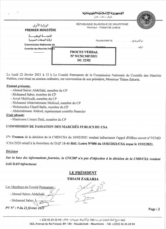 يوم 22 فبراير الجاري، أعلنت لجنة مراقبة الصفقات أن الصفقة "غير مثمرة" لتعلن بعد يوم وحد من هذا القرار، أي يوم 23 فبراير منح الصفقة عبر التراضي للشركة السنغالية.