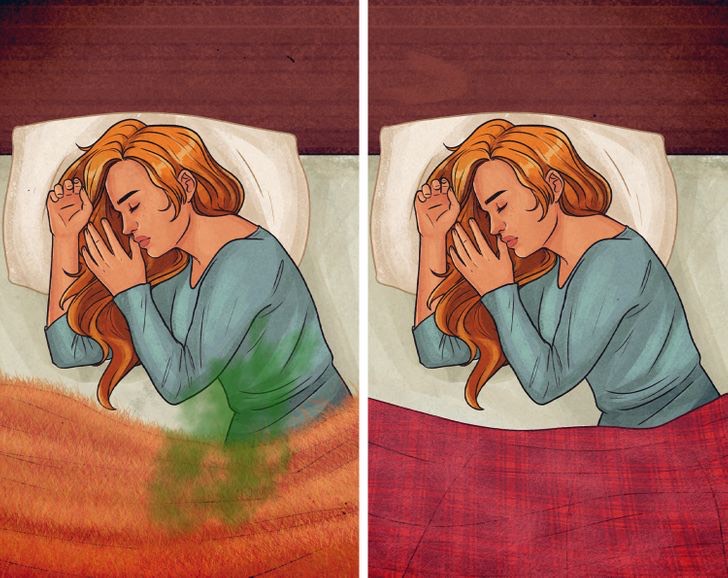 بما أن بعض الأشخاص لا يستطيعون النوم دون غطاء، فمن الضرورة أن يكون اختيارنا للأغطية اختيارا صحيحا حتى نستمتع بنوم مريح، صحيح أن الأغطية المصنوعة من البوليستر يكون من السهل حملها وغسلها في أي وقت، لكنها ليست الاختيار الأفضل للحصول على نوم هادئ، هذه المادة لن تسمح لجسمك أن يحتفظ بدرجة حرارة تناسبه، وهذا سيجعلك تشعر بالحر أثناء النوم، لكن عليك استبدالها بأغطية من الصوف أو القطن هذه الأنواع ستمنحك الدفء وفي الوقت نفسه ستجعل بشرتك تتنفس.